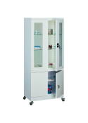 Dzięki przeszklonym drzwiom, wykonanym z hartowanego szkła, możliwa jest stała kontrola ilościowa i jakościowa przechowywanych produktów. Szklane półki pozwalają natomiast zachować odpowiedni poziom sterylności i czystości. Obrotowy uchwyt drzwiowy wyposażony jest w zamek zabezpieczający, ryglujący drzwi w dwóch punktach.