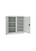 ![]() | SL 168.18 SL 168.21 | - dzielona ścianka środkowa - 4 półki ocynkowane - 2 szuflady 300mm - 9 szuflad 100mm - 1 zamykany schowek 300mm | |