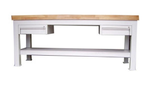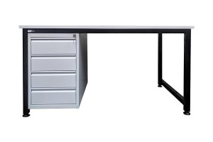 Bazą każdego stołu warsztatowego, który wykonujemy, jest solidny stelaż, spawany z profili stalowych. Większość modeli wyposażona jest w dodatkowe wzmocnienie w dolnej części stołu, łączące jego nogi w celu zapewnienia jeszcze większej stabilności mebla. Całość osadzona jest na stopkach regulacyjnych, umożliwiających wypoziomowanie w przypadku niewielkich nierówności podłoża. Wszystkie elementy są malowane proszkowo na wybrany kolor w profesjonalnej lakierni.