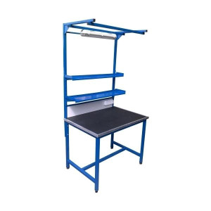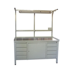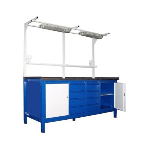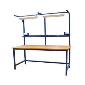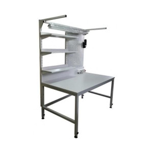 W przypadku potrzeby doświetlenia miejsca pracy wykonujemy nadstawki-stelaże ponad blat. Spełniają one kilka funkcji. Pierwszą z nich jest oczywiście możliwość zamontowania oświetlenia – najczęściej w postaci lamp halogenowych (1-2 szt. w zależności od szerokości stołu) lub ledowych, których model Klient może wybrać samodzielnie. Lampy montowane przy stołach warsztatowych mają możliwość regulacji kąta padania światła, dzięki ruchomej konstrukcji urządzenia. Rama nadstawki stanowi również bazę do zamontowania dodatkowego wyposażenia. Mogą to być półki, stanowiące przeważnie miejsce, gdzie tymczasowo odkłada się używane podczas pracy przedmioty czy narzędzia.