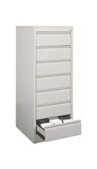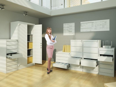 Szafy kartotekowe sprawdzają się wszędzie tam, gdzie trzeba przechować znaczną ilość dokumentów. Stanowią powszechne wyposażenie biur, urzędów oraz przychodni lekarskich. Nasze szafy kartotekowe są estetyczne, funkcjonalne i trwałe, a co najważniejsze pozwalają zachować idealny ład, porządek oraz przejrzystą segregację kartotek i akt. Występują w wersjach różniących się ilością szuflad i wielkością przestrzeni do przechowywania dokumentów i kopert. W szafach kartotekowych można umieścić teczki lub segregatory o standardowych formatach, jak A4, A5 czy B5, a także występujące w innych, nietypowych wymiarach. Szuflady są osadzone na prowadnicach kulkowych i wyposażone w zabezpieczenie przed wypadaniem. Mechanizm zamykający uniemożliwia wysunięcie więcej niż jednej szuflady, minimalizując ryzyko przewrócenia szafy.