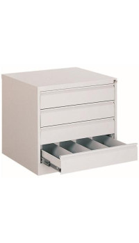 ![]() | SCD 33 | 630 x 505 x 565 | 3 | Każda szuflada przystosowana jest na 3 rzędy, po 22 płyty w jednym. Stojaki na płyty są ruchome. Szyldziki opisowe na froncie każdej szuflady. Pełny wysuw szuflad umożliwia łatwy dostęp do płyt wstawionych na końcu. Centralny zamek blokujący wszystkie szuflady. Prowadnice kulkowe o podwójnym wysuwie, z zabezpieczeniem przed wypadaniem. |