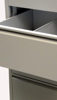 Każda przegroda może zostać opisana przy wykorzystaniu dołączonych samoprzylepnych szyldzików opisowych. Całość wyposażona jest w specjalny mechanizm, umożliwiający wysunięcie jednocześnie tylko jednej szuflady, co stanowi zabezpieczenie szafy kartotekowej przed przewróceniem. Nasze szafy kartotekowe spełniają wymogi przechowywania dokumentów objętych klauzulami RODO.