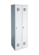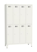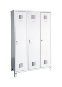 Wentylacja szaf odbywa się poprzez system otworów wentylacyjnych o nowoczesnym designie umożliwiającym swobodną cyrkulację powietrza. Zgrzewana konstrukcja oparta na profilach zamkniętych wpływa na sztywność i trwałość konstrukcji. Szafki mogą być wyposażone w nóżki lub ustawiane na podstawach z ławką.