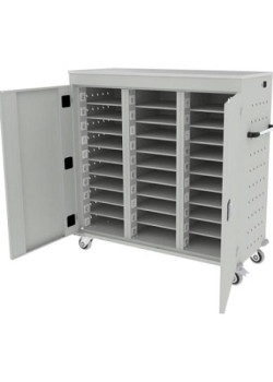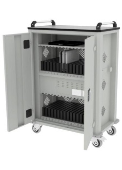 ![]() | WNT 33 | 1050 x 730 x 440 | 32 | Wózek do przechowywania 32 tabletów i 1 laptopa. Posiada wkłady wykonane z pianki niepalnej, ponumerowane, półkę z gniazdem do ładowania laptopa, uchwyty do przemieszczania. Drzwi szafy zamykane zamkiem zabezpieczającym z blokadą w dwóch punktach. Wierzch pokryty blatem z melaminy. Korpus wózka posiada otwory wentylacyjne do cyrkulacji powietrza. Do wózka jest dołączany przewód przyłączeniowy o długości 3 metrów. |