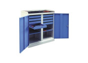 ![]() | SL 164.18 SL 164.21 | - dzielona ścianka środkowa - 4 półki ocynkowane - 1 szuflada 300mm - 5 szuflad 100mm - 2 zamykane schowki 300mm | |