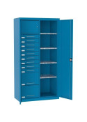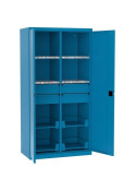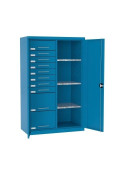 ![]() | Swm 205 | 1990 x 1000 x 435 | Szafa wyposażona w listwy do mocowania pojemników narzędziowych o wymiarach 108 x 144 x 224 /170 mm (72 sztuki) na ścianie tylnej i o wymiarach 56 x 77 x 119 /90 mm (po 80 sztuk) na drzwiach szafy. Szafa dostarczana z pojemnikami. |