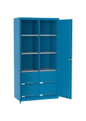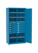 ![]() | SL 168.18 SL 168.21 | - dzielona ścianka środkowa - 4 półki ocynkowane - 2 szuflady 300mm - 9 szuflad 100mm - 1 zamykany schowek 300mm | |