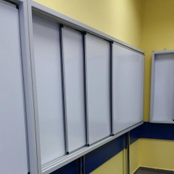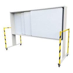 Wielowarstwowe tablice przesuwne powstały jako odpowiedź na potrzebę maksymalizacji przestrzeni prezentacyjnej w tradycyjnej formie, przy równoczesnej oszczędności miejsca. Sprawdzają się zarówno w pomieszczeniach konferencyjnych jak i na halach produkcyjnych. Solidnie wykonane z lakierowanych profili stalowych, występują w wersji jezdnej na kołach jak i zawieszanej (przystawnej) - z dodatkowym zabezpieczeniem w postaci nóg. Przestrzeń roboczą stanowią w nich tablice magnetyczne ułożone warstwowo, przesuwane za pomocą rolek na prowadnicach.