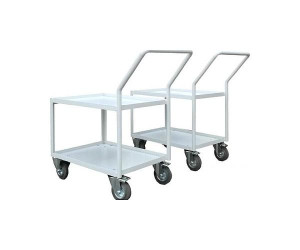 W ofercie katalogowej posiadamy standardowe wózki warsztatowo-narzędziowe. Wykonujemy również różne modele z samymi półkami lub specjalistyczne do przewozu elementów wykorzystywanych w fabrykach. Wózki lżejsze wykonywane są z profili lub kątowników stalowych, a ich konstrukcja osadzona jest na kołach o rozmiarze dostosowanym do przeznaczenia i wymaganej nośności. Półki mogą być wykonane z blachy, płyty laminowanej lub sklejki, również wyłożone gumą. Dla wygodnego prowadzenia montujemy uchwyty z tworzywa lub metalowych rurek.
