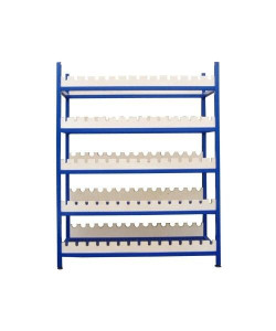 Na specjalne zamówienie wykonywaliśmy również regały przeznaczone do składowania broni długiej. Na standardowej konstrukcji z profili i kątowników zostały umieszczone specjalne elementy ze sklejki z wyciętymi charakterystycznymi wyżłobieniami, pasującymi do kształtu składowanej broni.